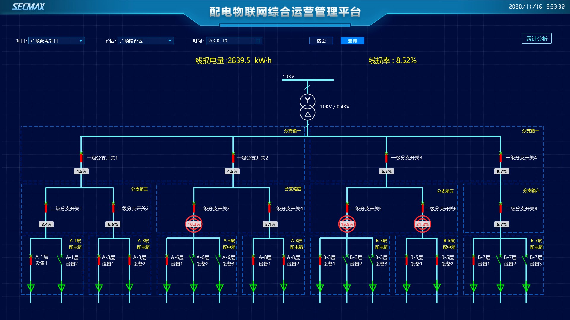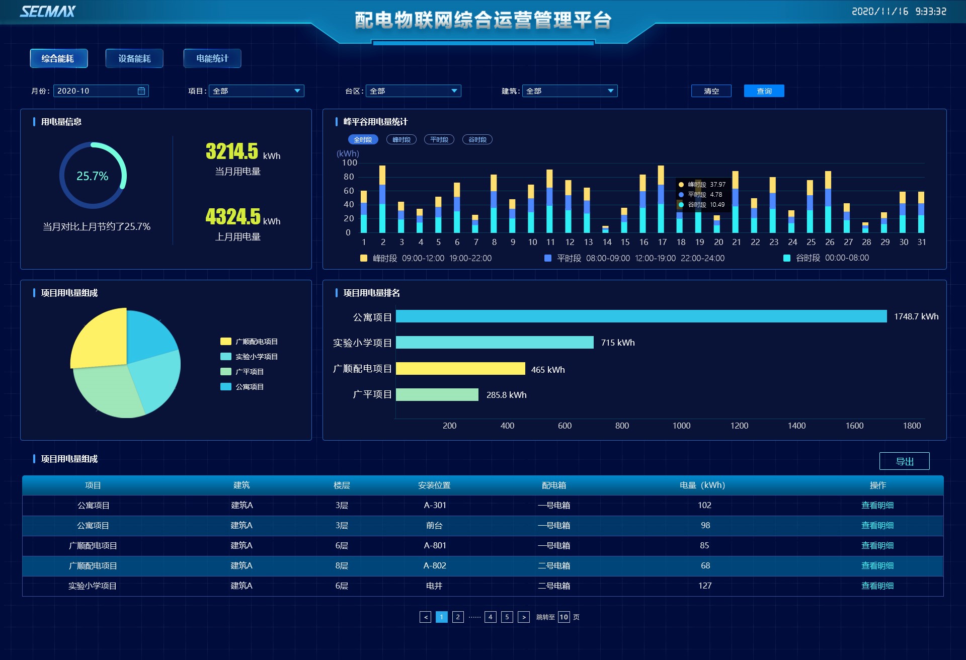 展示臺區(qū)綜合能耗以及能耗明細(xì)數(shù)據(jù)。