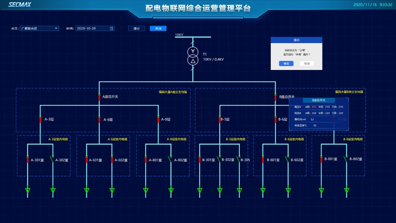 SECMAX 電力物聯(lián)網(wǎng)綜合運(yùn)營管理平臺融合了物聯(lián)網(wǎng)、云計算、大數(shù)據(jù)等技術(shù),通過 SECMAX 系列數(shù)字?jǐn)嗦菲鲗崿F(xiàn)了對用 電線路電氣指標(biāo)的精準(zhǔn)感知與數(shù)據(jù)的實時采集。
